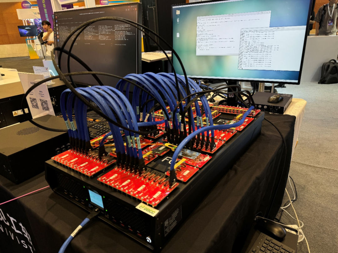 现场展示的组网验证平台依托于合见工软的全场景验证硬件平台UniVista Unified Verification Hardware System(简称“UVHS”),其已在客户处实际商用部署的最大系统达到160颗VU19P级联,超过60亿逻辑门,得益于核心技术全局时序驱动的自动分割引擎,在超大型系统场景下仍能保持10MHz的高运行性能。经由市场打磨,已在多家客户的主流大芯片项目中部署,实现了多家客户全芯片级别的软硬件验证并协助客户成功流片迭代,客户包括中兴微电子、燧原科技、清华大学、达摩院玄铁、北京开源芯片研究院等。