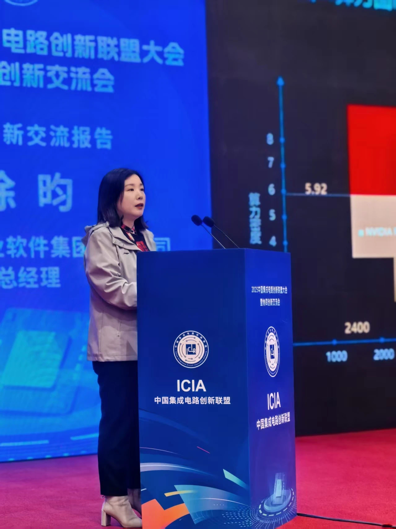 在大会上,合见工软总经理徐昀女士受邀做主题交流报告,题为《对应生态新格局,国产EDA/IP积极助力芯片产业》。