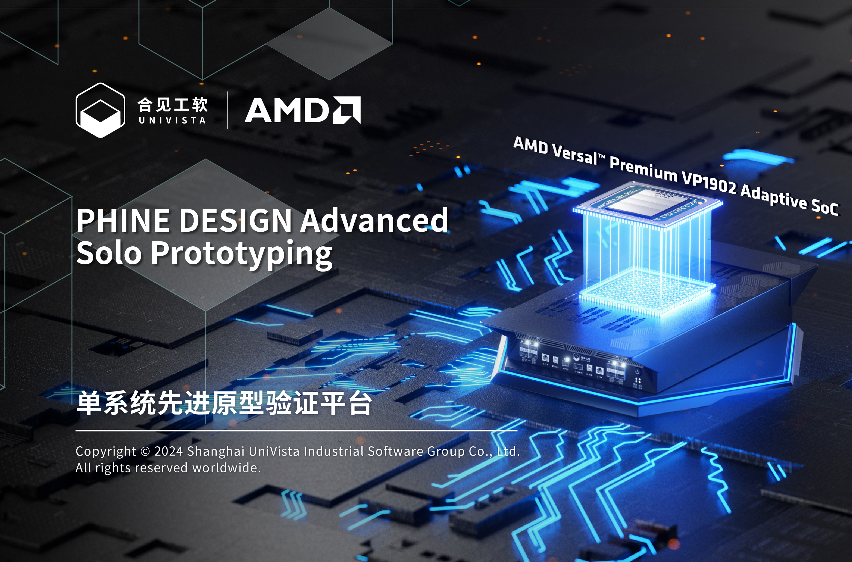 上海合见工业软件集团股份有限公司(简称“合见工软”)推出全新一代商用级、单系统先进原型验证平台PHINE DESIGN Advanced Solo Prototyping(简称“PD-AS”),搭载AMD新一代超大自适应SoC——AMD Versal™ Premium VP1902 Adaptive SoC,采用先进工艺,整体设备性能提升两倍以上,并配套灵活便捷的操作界面、丰富多种的接口方案,可覆盖更大规模的芯片验证场景,将广泛应用于5G-WIFI通讯、智算、AIoT、智能汽车、RF-导航、RISC-V IP、VR/AR等行业领域。